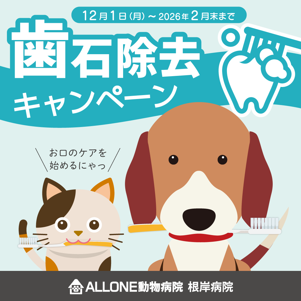 12/1(月)から、ALLONE動物病院 根岸病院にて「歯石除去キャンペーン」を実施します。